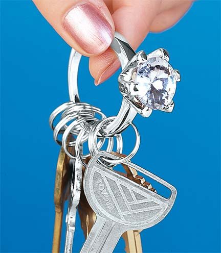 This Diamond Ring Key Chain is a girl's best friend! Extremely handy and simply stunning. It features a brilliant acrylic 16 mm diamond-like stone, glittering with the magnificence of a faceted diamond.